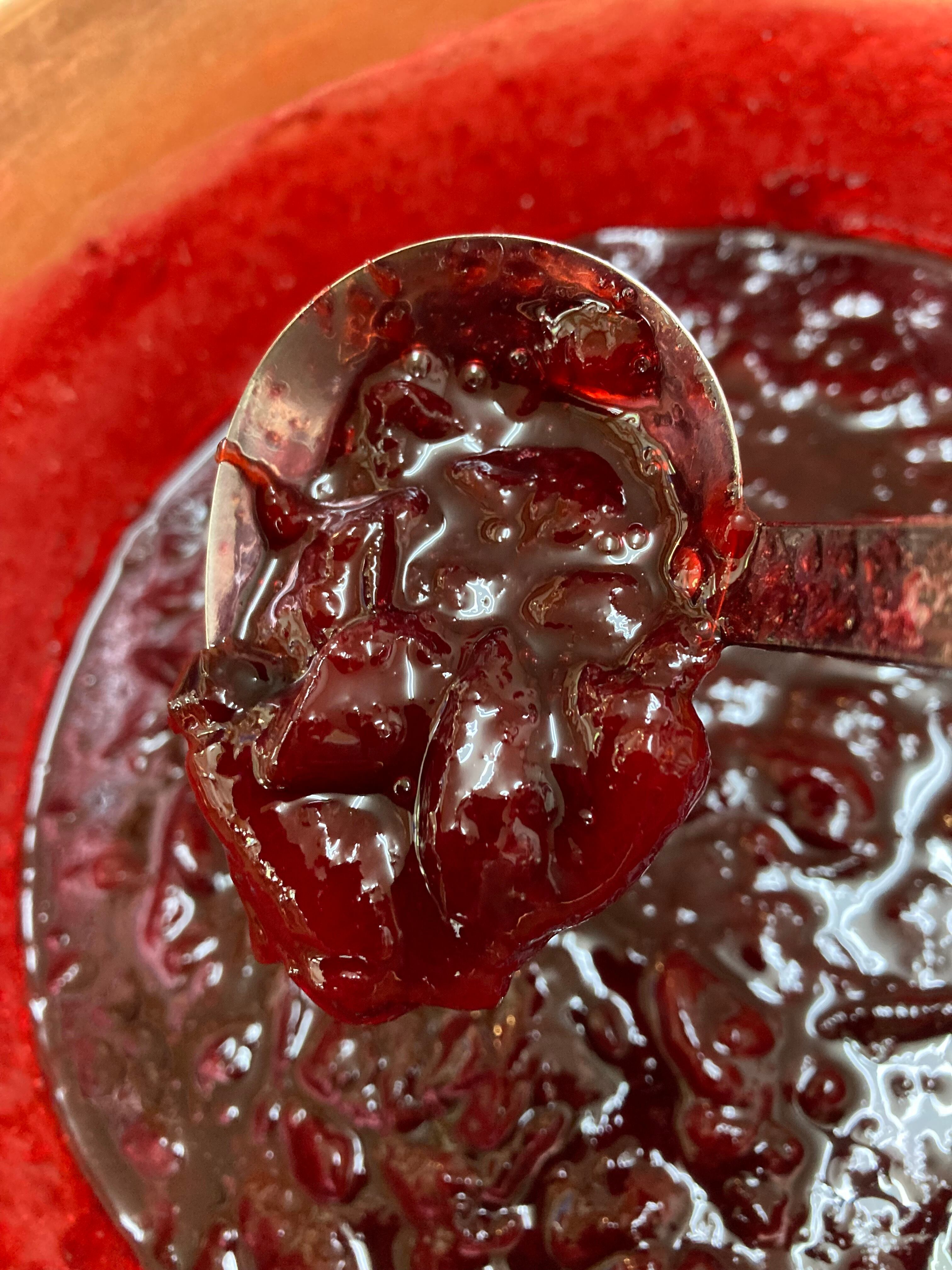 スモモの赤色はアントシアニン、自然の色をそのままに皮ごと使って煮込んでいます。